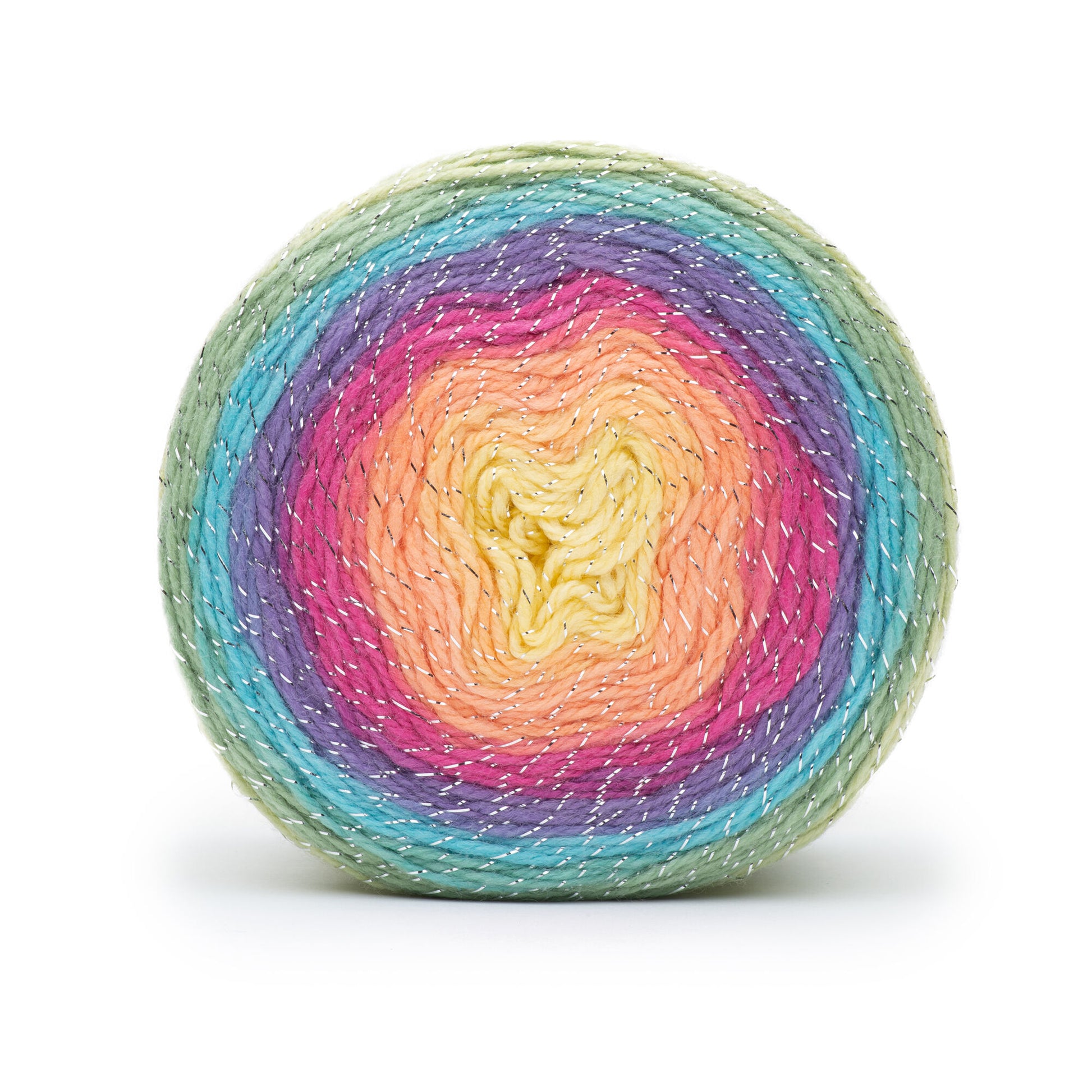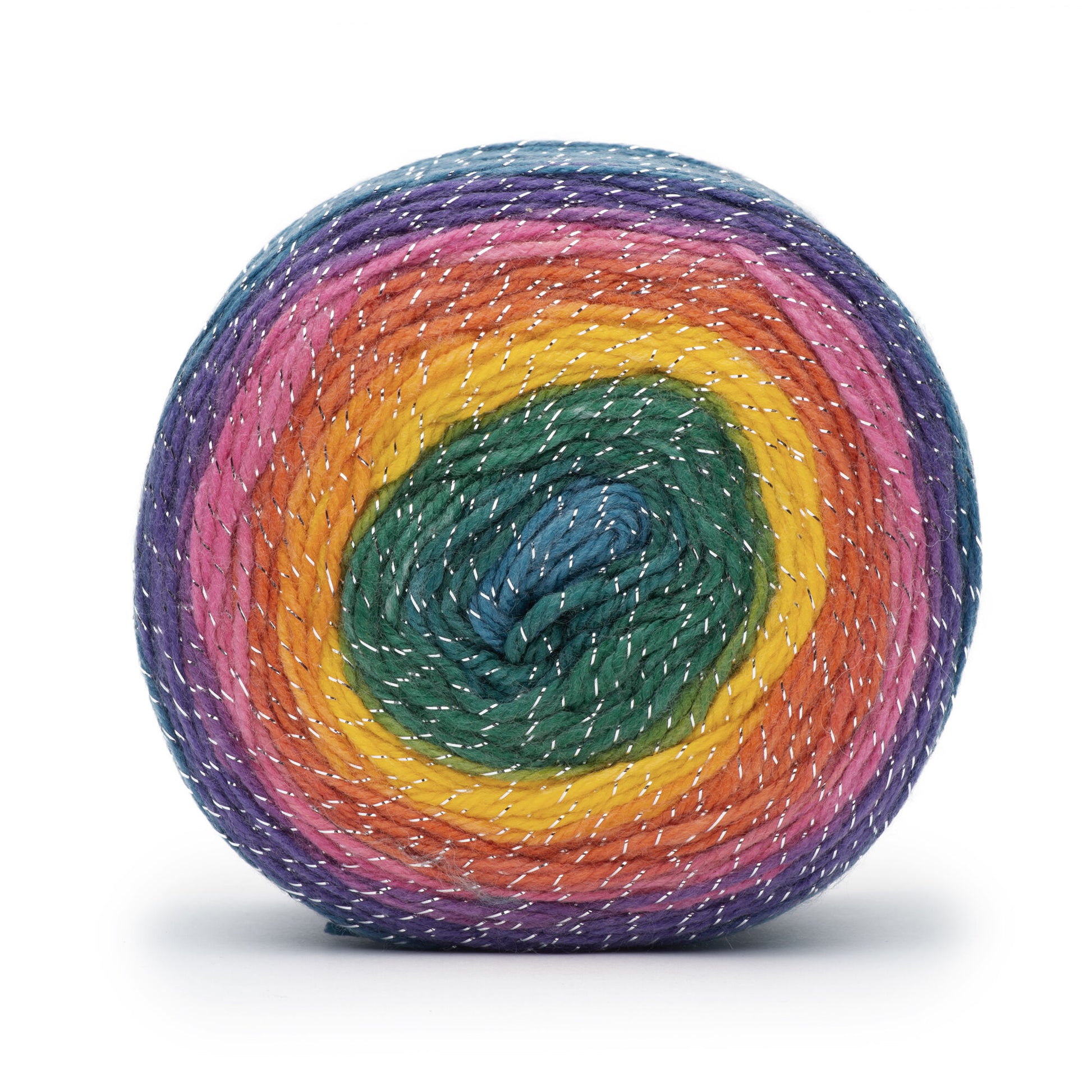 Add a little sparkle to your life and take your knit or crochet fashions to the next level with this self-striping yarn. Contrasting metallic sparkle and unique color combinations are perfect for creating statement pieces and accessories. The color range includes a variety of eye-catching shades.